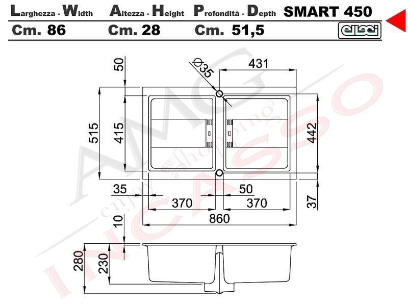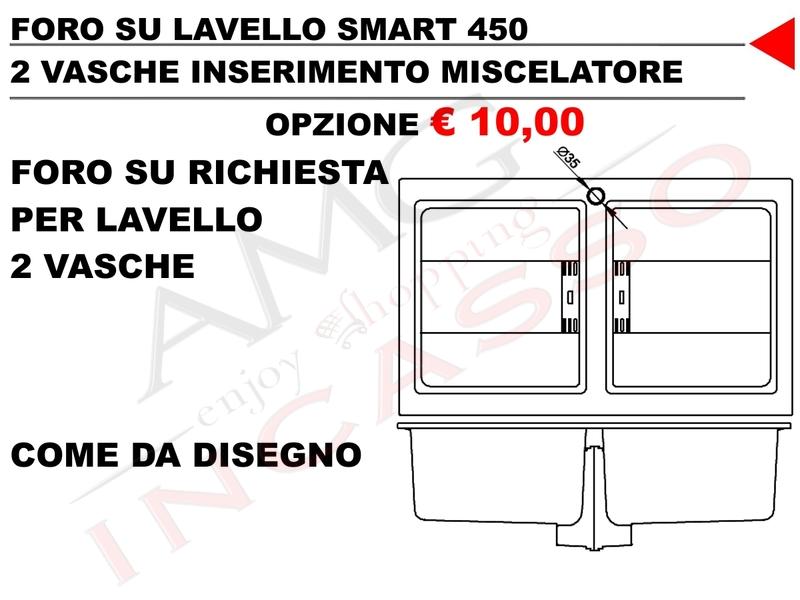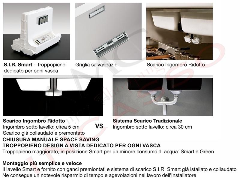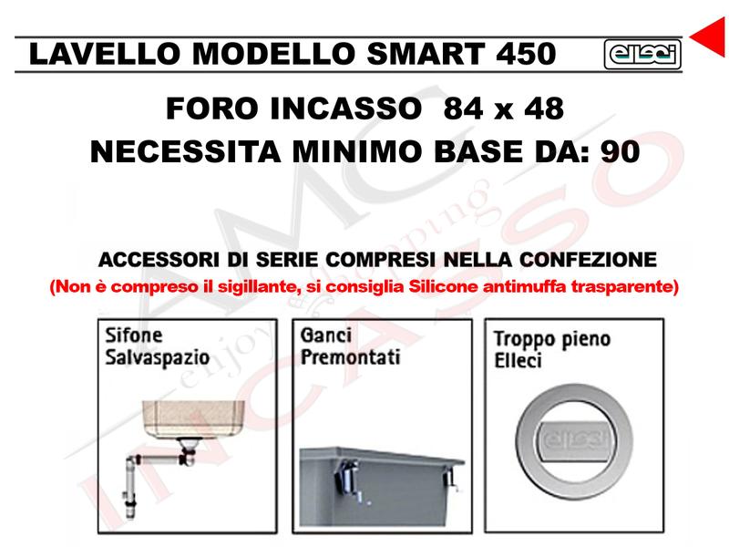 Lavello compreso di: Piletta, Sifone attacco lavastoviglie salva spazio, Agganci di Fissaggio.